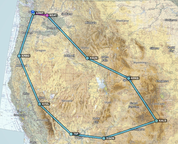 Scroll DownOver a period of 30 days, working in weekend flights of an hour at a time, I completed a 2,285 nautical mile tour I called the “West Executive Tour”, flying a virtual Embraer Phenom 100 in real-world conditions from my home town of Renton, WA to Idaho, then down to the Southwest US via Wyoming, Colorado, Arizona, and Nevada, and back again up through California and Oregon.