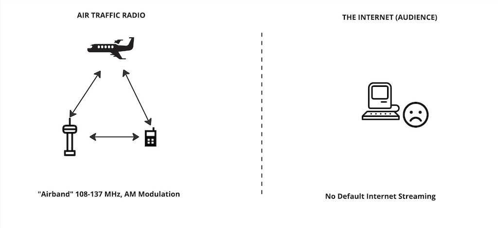 That’s IF you have the aviation radio in the first place. And that’s the trick. Very few do. Pilots, tower operators, some enthusiasts, but it’s not a frequency band generally tunable on your car or internet radio, and even if you did, it’s so highly location dependent you’d only get your “local” traffic on your tuned frequency, not traffic from far away.